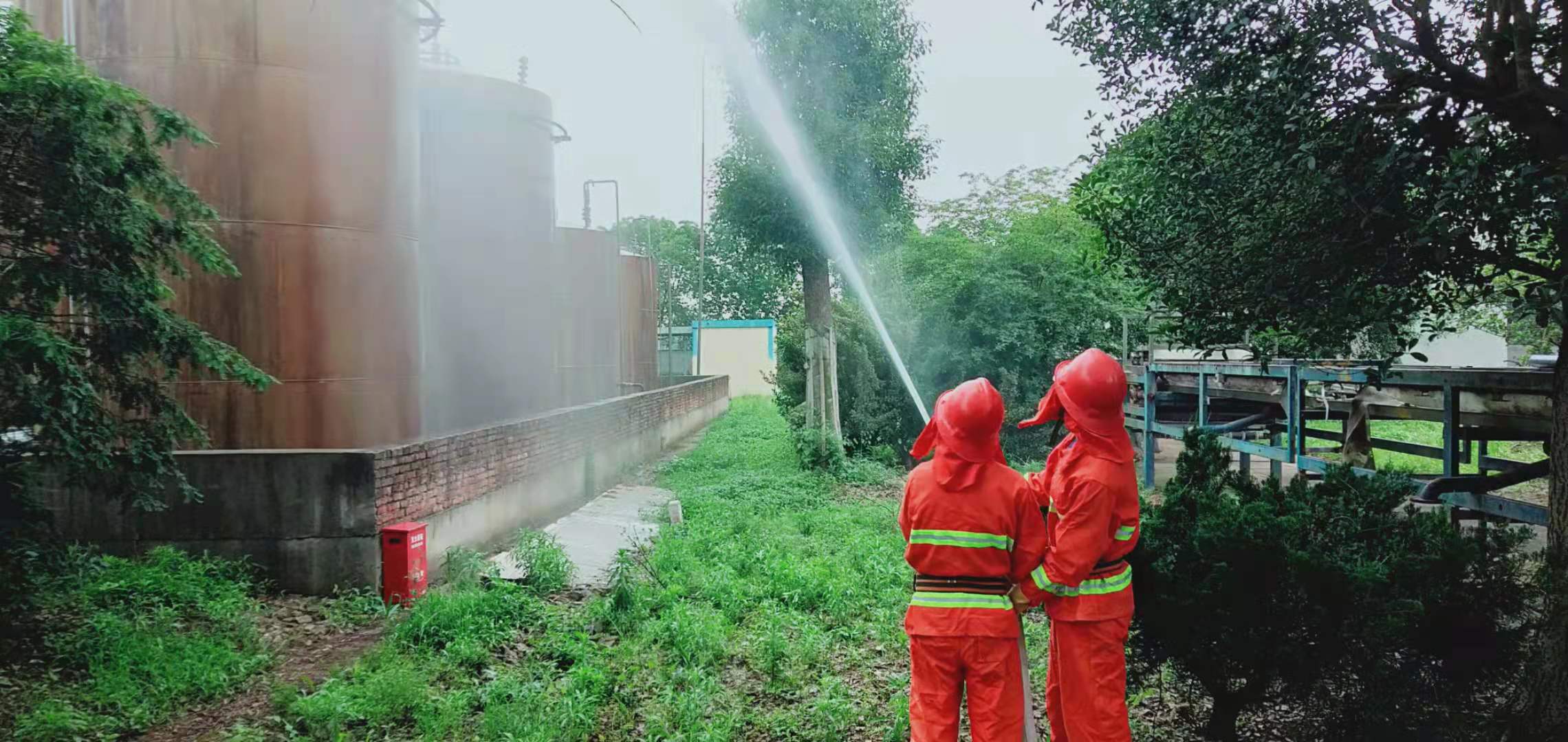 本次演練在生產(chǎn)區(qū)域?qū)嵤?,由生產(chǎn)系統(tǒng)人員為主。上午9:30演練開始,警報聲響起,大家在第一時間沿著安全出口的路線,有條不紊的進行迅速撤離。生產(chǎn)區(qū)模擬儲罐區(qū)2#罐丙烯酸正丁酯儲罐在卸料時發(fā)生物料泄露而引發(fā)初始火災,專業(yè)人員立即關(guān)閉緊急切斷閥,關(guān)閉罐區(qū)截止閥,并報告應急指揮組啟動應急預案,快速使用應急設(shè)備和物資,防止物料進一步泄漏引發(fā)更大的火災而造成更大的損失,全體應急搶險隊員使用泡沫滅火設(shè)施向罐體和燃燒點集中噴水滅火降溫,并成功救出一名受傷被困的員工,整個演練過程用時不到20分鐘,安全有序、反應迅速,行動敏捷,整個演練圓滿成功。